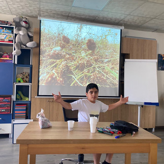 questioneer kid chose a certain name and wrote it on the cup. After that, the beans were distributed among the class and they planted them in their cups.